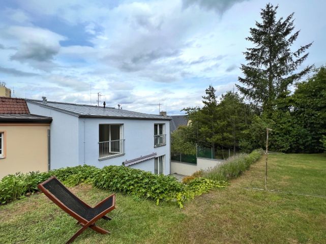 Zahrada je přístupná přes společné venkovní schodiště podél boční strany domu. K bytu lze užívat celá horní část zahrady včetně venkovního krbu (cca 180 m²), nádoby na zalévání. V případě zájmu bude poskytnut záhon na pěstování bylinek.
