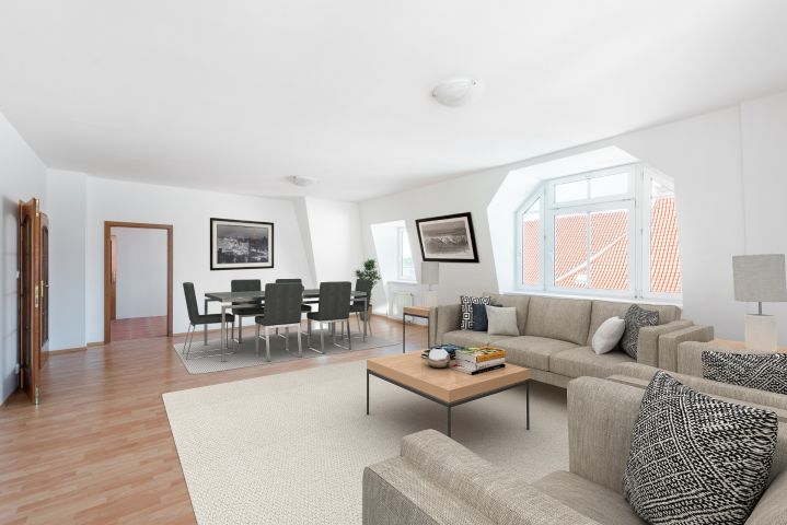 doslova můžete zatančit. Celková plocha bytu činí 125,3 m², jejíž