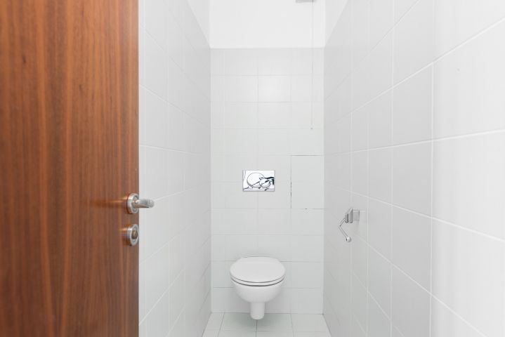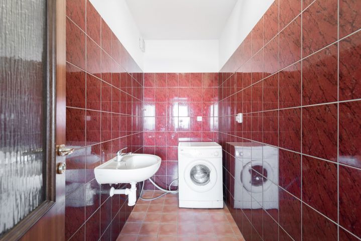 Vytápění je zajištěno etážovým závěsným plynovým kotlem s průtokovým ohřevem teplé vody s rozvody v mědi. Radiátory s termo hlavicemi, termostat je umístěn v obývacím pokoji. Přípojka na pračku je vyvedena v prádelně (místnost vedle WC původně evidovaná jako fotokomora). Bezpečnostní protipožární dveře.