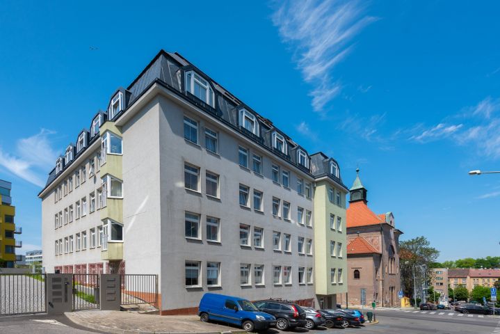 Bytová jednotka je svou rozlohou druhá největší v domě. Tvoří ji vstupní chodba se samostatnými vstupy do všech místností: technické komory s kotlem, prádelny, koupelny, WC a 4 místností. Byt je veden jako 3+1, avšak rozloha obývacího pokoje umožňuje vybudování kuchyňského koutu se získáním dalšího pokoje na místě původní kuchyně. Pro všímavé, atypická okna korespondují s tvarem oken kostela sv. Anny. Byt nabízí nadstandardní výšku stropů cca 276 cm a v případě rekonstrukce nabízí velkou variabilitu změny dispozic, jak u obývacího pokoje s kuchyní, tak u sociálního zařízení a komory.